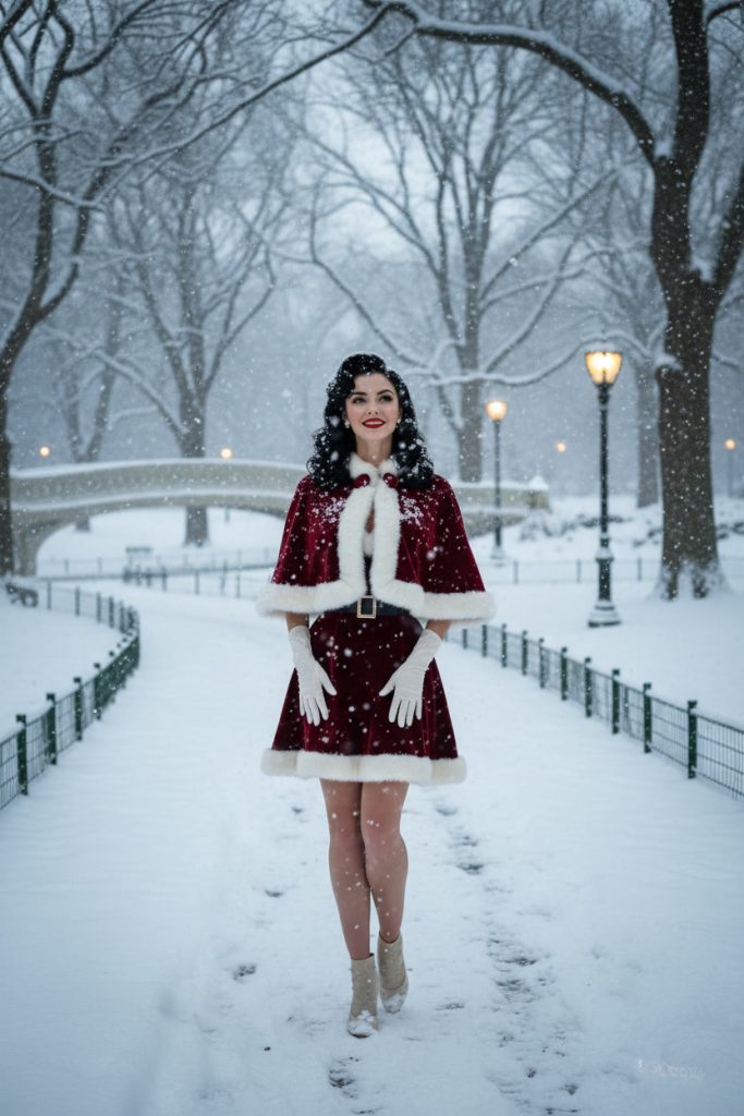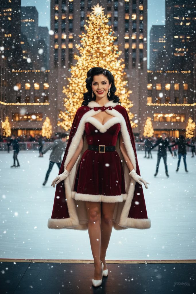 Є образи, які з’являються не тому, що ми шукаємо їх. Вони виникають самі, наче приходять з іншого часу — з епохи кіно, вінілових пластинок і мерехтіння золотих лампочок. Саме так народилася Vivienne Hart — вигадана героїня, яка ніби вийшла зі старого різдвяного фільму 1950-х, де магія зими зливається з блиском святкових вітрин Нью-Йорка.